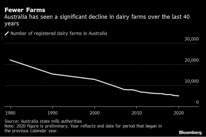 Now, dairy farmers still face the risk of punishing weather, but fresh pressures have been layered on that are driving still more of them out of the business. In 2022, Australia’s milk volumes are forecast to sink by more than 4% to 8.6 million metric tons, according to the US Department of Agriculture.