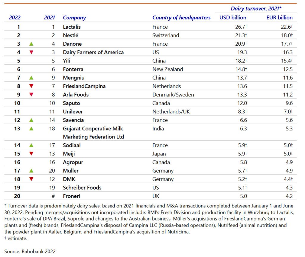 Even though Lactalis and Yili remained at the same position but they showed very high growth in their turnovers as well as acquisitions in 2021.