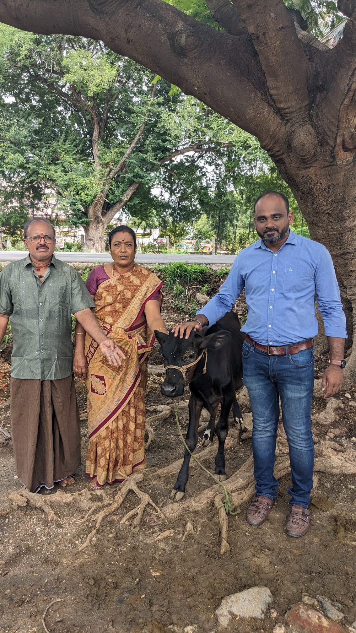 Pic : Left to Right: Jeevanandam, his wife Tamilselvi, calf affected with worm disease and Vijayakumar Ramalingam
