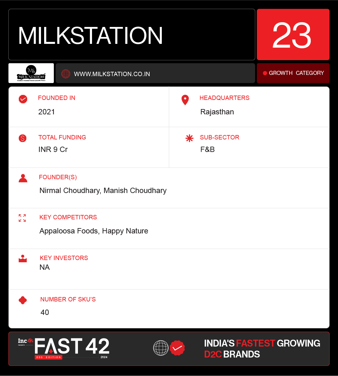 Rajasthan was India’s second-best milk producer in FY23 (Uttar Pradesh topped the list). However, the state lagged in dairy processing due to a weak supply chain, adulteration issues and a lack of product innovation. Aware of this market gap and how it hurts consumers and the state’s economy, Nirmal Choudhary, an engineer and a UPSC aspirant, and his brother Manish launched MilkStation to make fresh and good quality dairy products.The Differentiator
