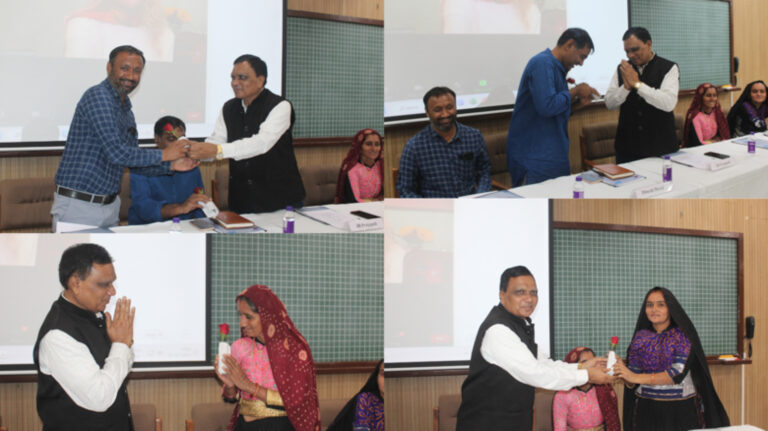 Anu Verma, Foundation for Ecological Security, Anand emphasized pastoralism as the answer to all the five crises that the globe is grappling with – crises of food, job, climate, peace and energy. Ramesh Bhatti, Centre for Pastoralism and Sahjeevan Trust discussed how mobility helps the pastoral production system for climate resilience and highlighted the different pastoralist communities across the Himalayas, western India and Deccan plateau. Bhavana Desai from Maldhari Mahila Sangathan (Pastoral Women Alliance) appreciated VKCoE’s initiative of ‘Rural Haat for Maldharis’ which paved the way of sustainable rural livelihood for Maldhari women such as initiation of Laxmiben Rabari Handicrafts. The workshop ended with a vote of thanks by the VKCoE Chairperson and a commemorative photograph.