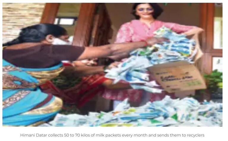 “We collect more than 9,000 tonnes of plastic a month from individuals and corporates, which we send for recycling. All we need is for people to just wash, dry, and keep them ready for us to collect,” she says. In Anna Nagar, Himani Datar collects milk packets from individuals, schools, gated communities, and offices, and then washes, dries, and ships them off to recyclers across the country.